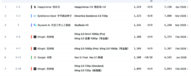 近日,一款名为HappyHorse-1.0的匿名模型(未标注厂商)开始在视频榜单登顶多项测评。据权威AI评测平台Artificial Analysis AI Video Arena排行榜,HappyHorse-1.0以更高的Elo分数压过字节跳动旗下Seedance 2.0、快手旗下可灵AI、Google Veo 3 Fast等视频模型,一举成为榜首。Elo评分系统(Elo Rating System)是一种用于计算竞技对弈中相对技能水平的数学方法,属于AI模型中的“段位分”。